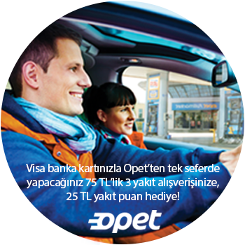 Visa Banka kartınızla Opet ten tek seferde yapacağınız 75 TL lik 3 alışverişinize, 25 TL yakıt puan hediye!